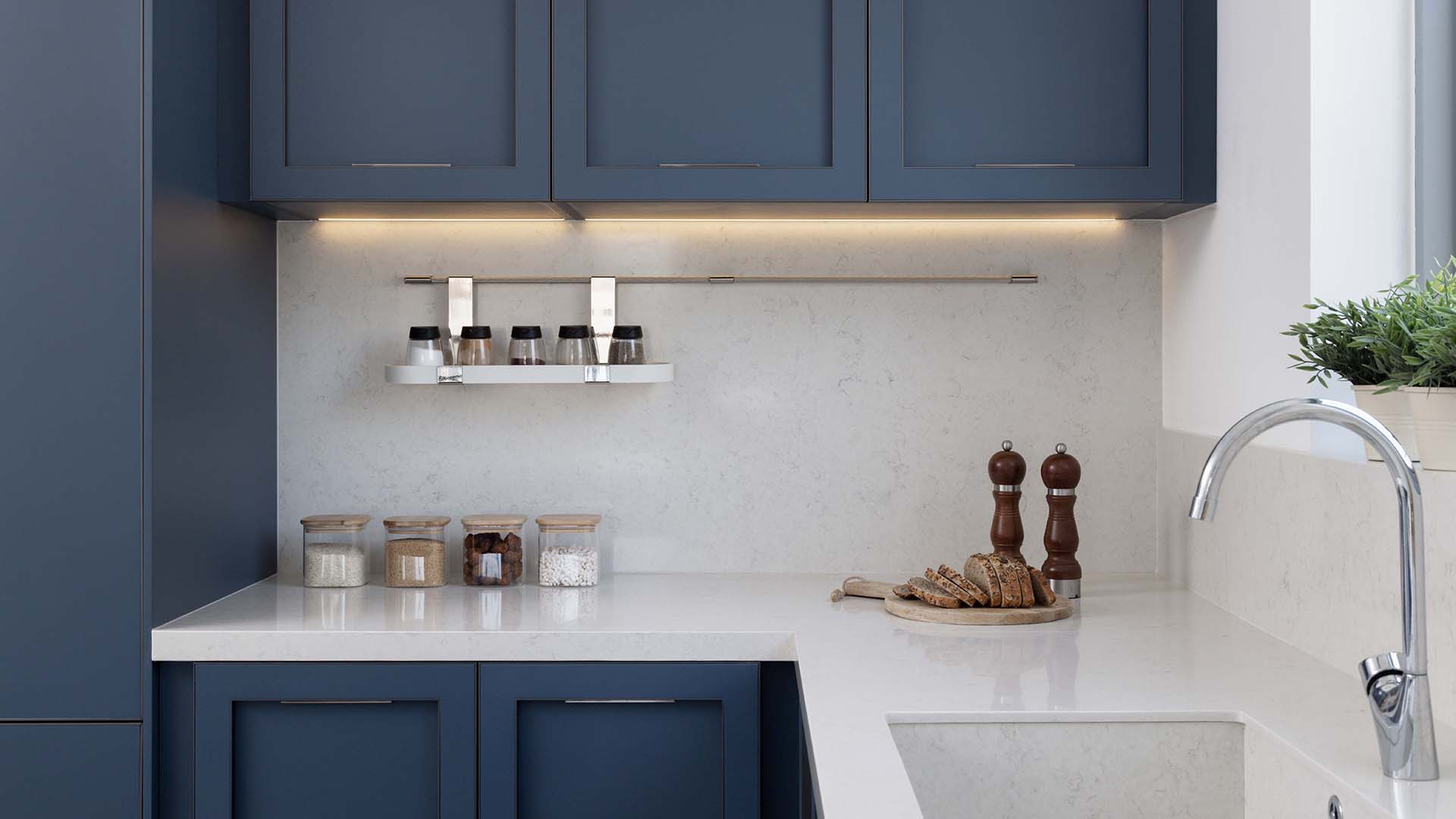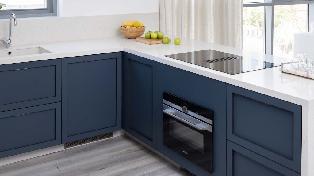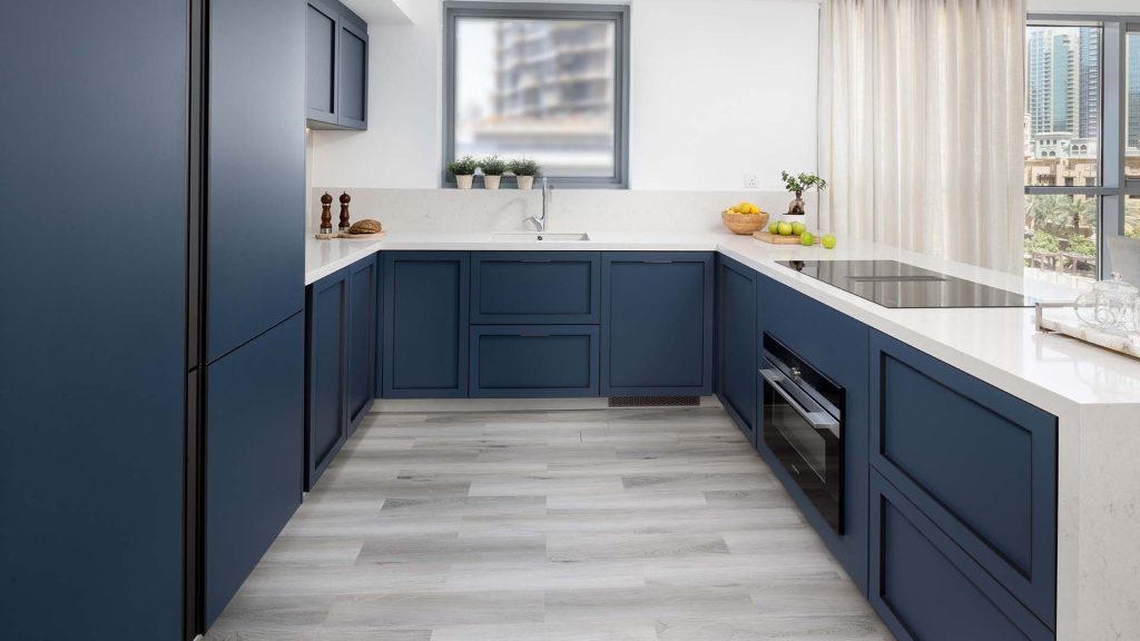 This project features a luxury kitchen for a residence in Business Bay, Dubai, designed with Ornare’s Shaker Collection in Blue. The cabinetry, with its frame design and sleek shaker-style, creates an elegant, timeless look, enhanced by delicate handles for a sophisticated touch. High-end Miele appliances are seamlessly integrated, offering top-tier functionality and performance. The design combines style and practicality, perfectly suited to the upscale Business Bay lifestyle for this Holiday Home.