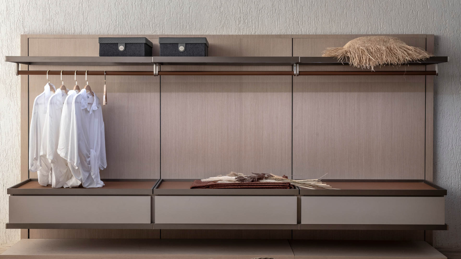 Flexibilidade é o ponto chave deste sistema, já que o painel permite milhares de configurações e possibilidades, construindo diferentes volumetrias no espaço. A possibilidade de criação de espaços abertos e fechados e de inclusão de elementos como prateleiras e bancadas de trabalho tornam o Wall System uma solução de fato multiuso.